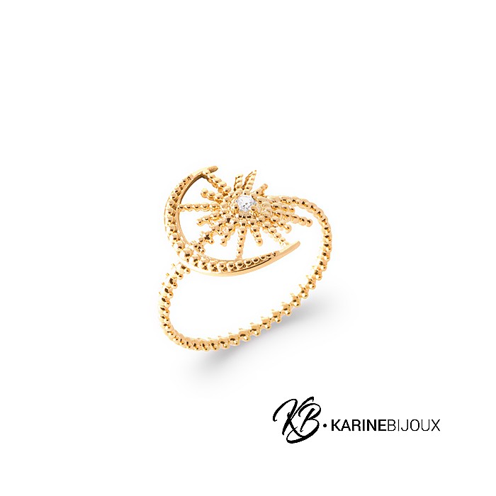 Bague Céleste lune et étoile plaqué or.