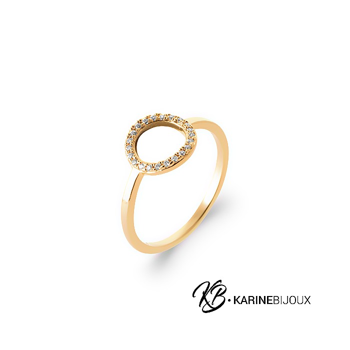 La bague Soleya présente un design élégant avec un cercle ouvert au centre, serti de petits oxydes de zirconium étincelants qui captent la lumière pour apporter de l'éclat.