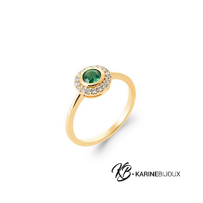 Bague pierre verte plaqué or Maïana.