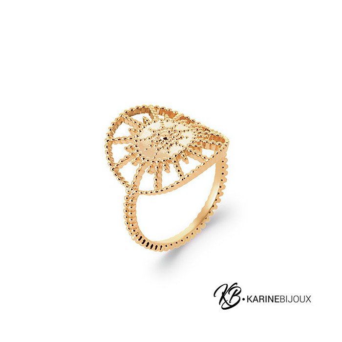 Le travail minutieux sur les détails du motif soleil et des petites boules met en valeur le raffinement exceptionnel de cette bague.