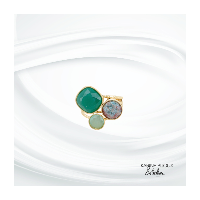 Bague trilogie agate verte et aventurine Evie.