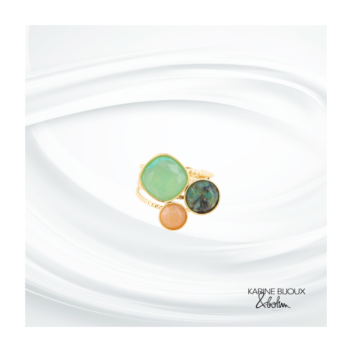 Bague ajustable trois pierres naturelles en acier doré Cléo.