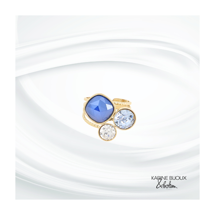 Bague cristal bleu en acier ajustable Daisy.