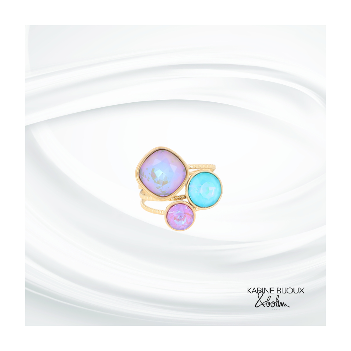 Bague cristal ajustable acier doré Grace.