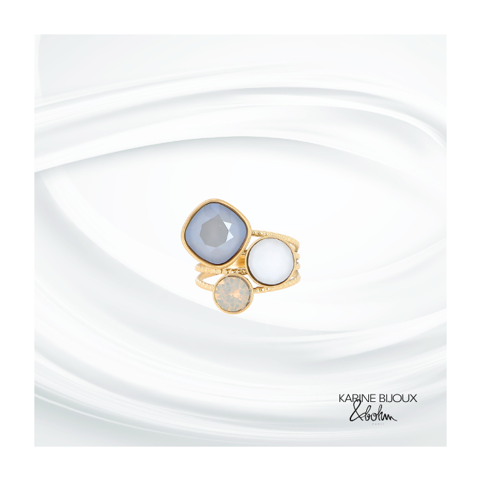 Bague 3 cristaux gris acier inoxydable Luna.