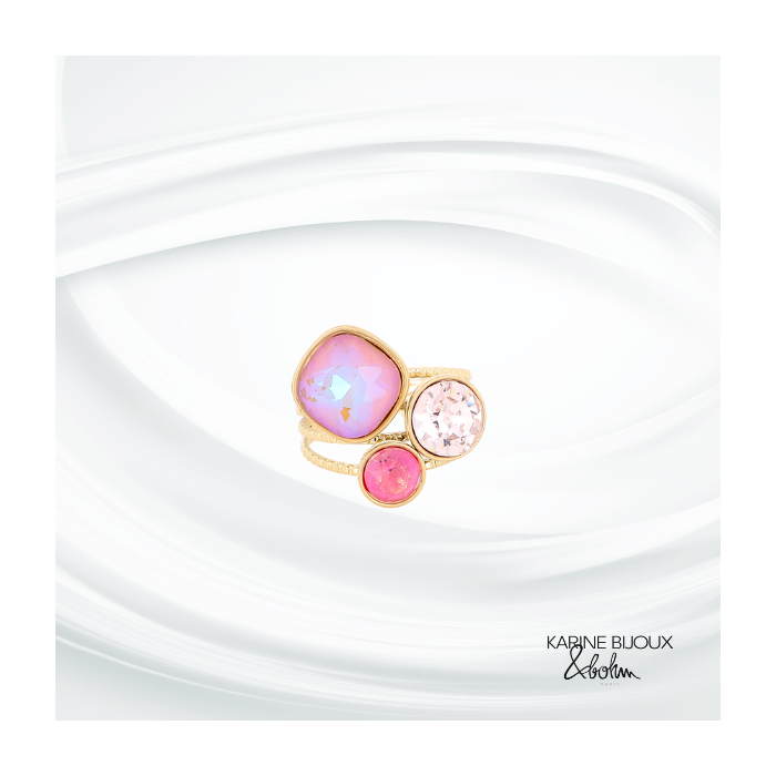 Bague cristal rose ajustable en acier doré Maia.