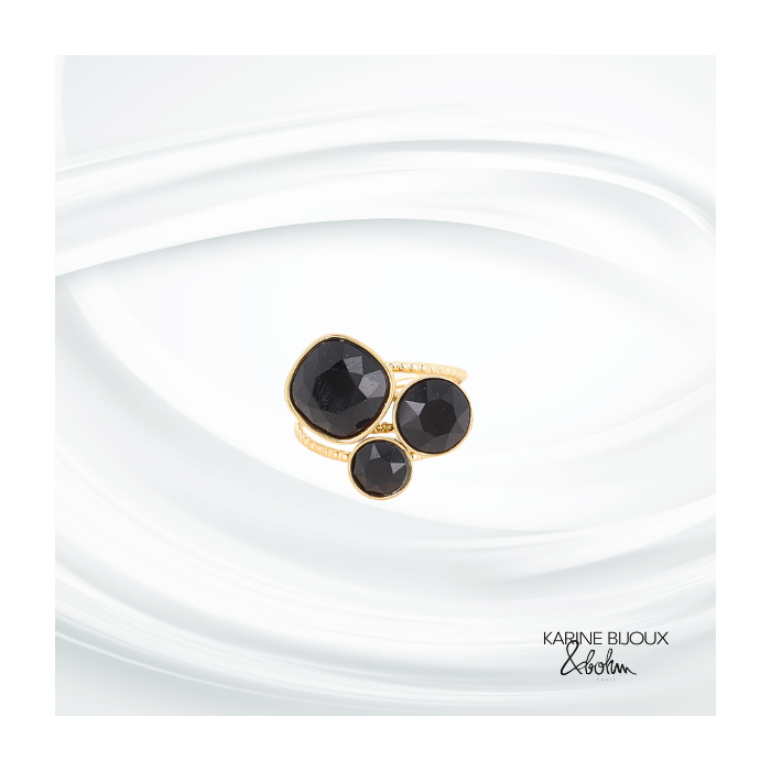 Bague cristaux noirs jet ajustable acier Mia.
