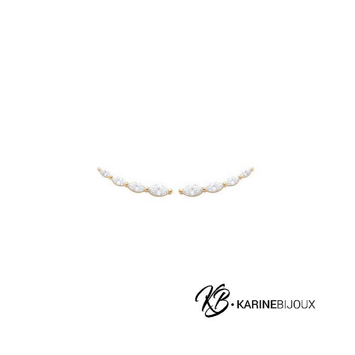 Réalisées en plaqué or 18 carats, elles sont ornées de petits oxydes de zirconium en forme de navette, pour un éclat discret et raffiné, semblable à celui des diamants.