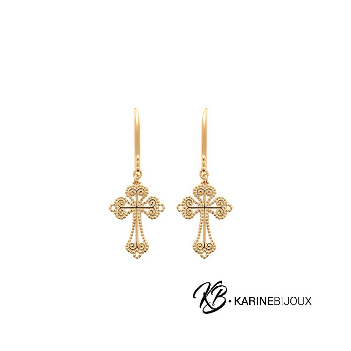 Boucles d'oreilles croix pendantes plaqué or Hina