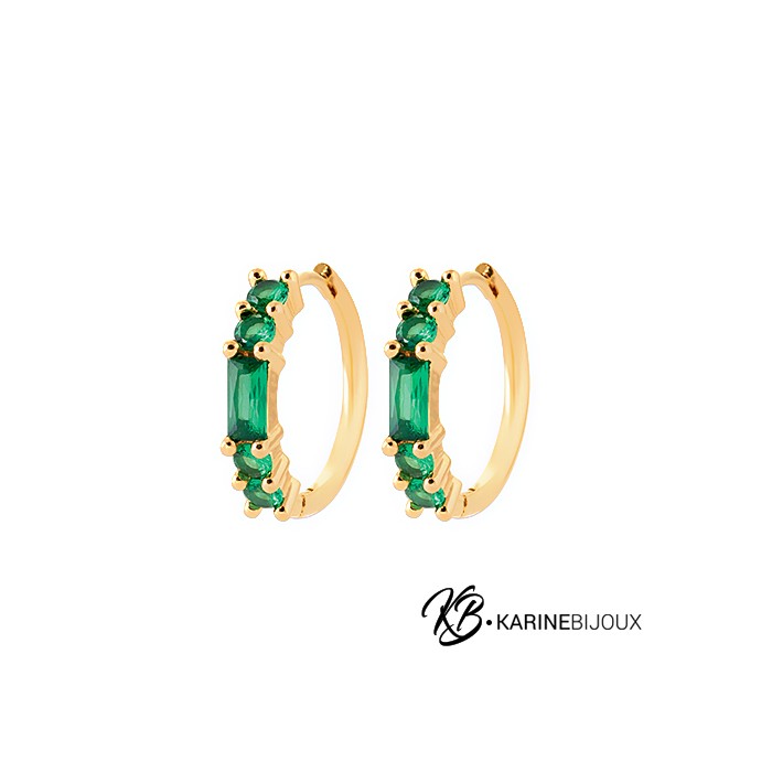 Créoles oxydes verts rectangles plaqué or Caily