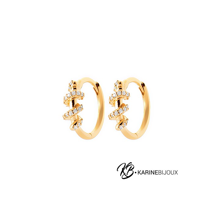 Les créoles Eira en plaqué or 18 carats apportent une élégance intemporelle à votre collection de bijoux. Chaque anneau présente une torsade délicate incrustée de petits oxydes de zirconium, qui captent la lumière avec éclat. Ce design raffiné fusionne classicisme et modernité, ajoutant une note de sophistication discrète à chaque tenue. Parfaites pour un usage quotidien ou des occasions spéciales, ces boucles d’oreilles offrent une touche de luxe subtil et un éclat captivant.