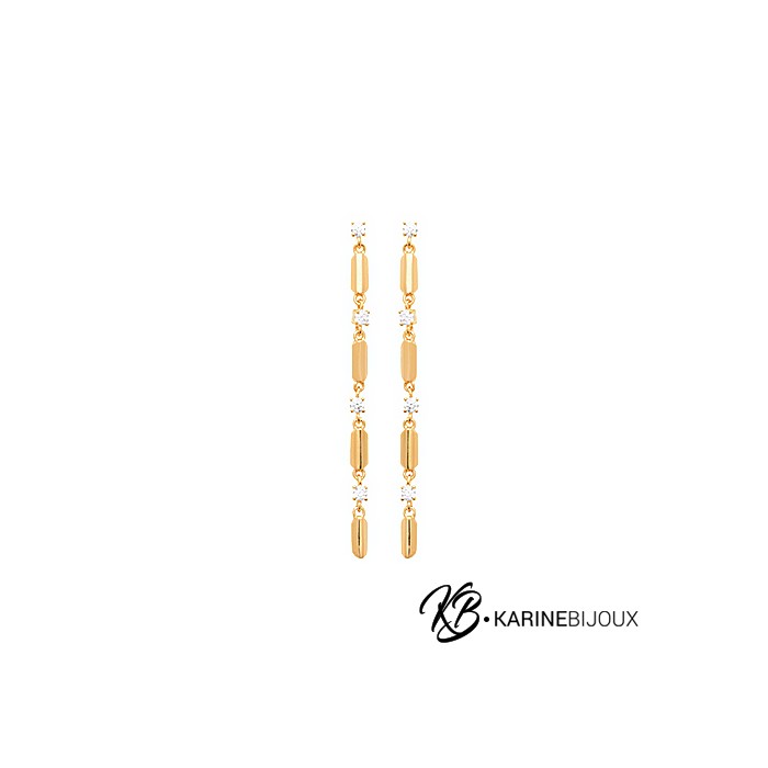 Les boucles d’oreilles longues Soraya en plaqué or 18 carats incarnent l’élégance et la modernité. Chaque boucle est constituée de plusieurs segments subtilement reliés, agrémentés de petits oxydes de zirconium qui capturent la lumière à chaque mouvement, apportant un éclat raffiné. Ces boucles d’oreilles sont idéales pour ajouter une touche de sophistication à votre look, qu’il soit décontracté ou habillé, et sont le choix parfait pour des occasions spéciales comme pour le quotidien.