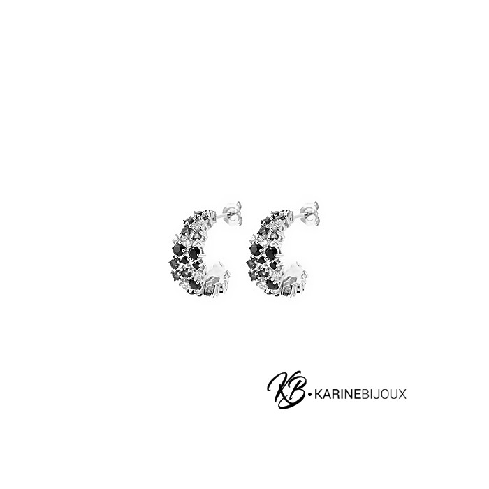 Demi créoles pierres noires argent Elinne
