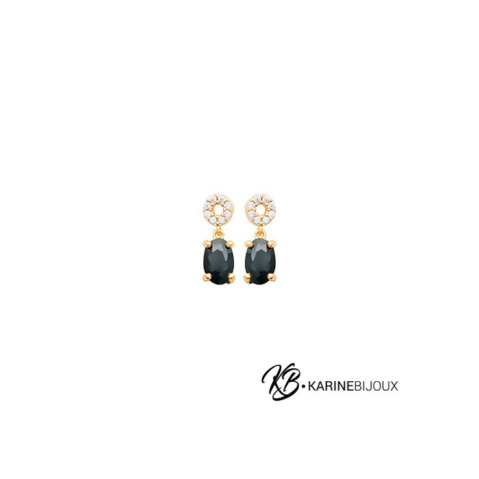 Boucles d'Oreilles Plaqué Or 18 Carats cristal noir - Élégance Obscure.