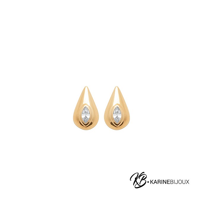 Puces d'Oreilles Plaqué Or 18 Carats. Goutte Précieuse.