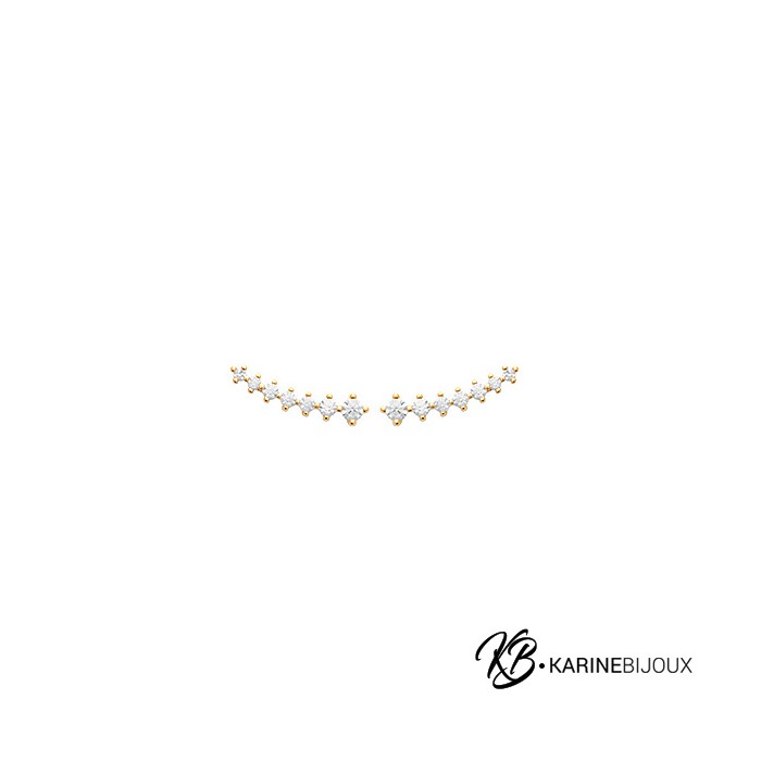 Ces boucles d'oreilles en plaqué or 18 carats se distinguent par leur design audacieux. Fixées sur le lobe, elles épousent délicatement la courbe naturelle de l'oreille pour un rendu moderne et raffiné. Chaque boucle est ornée d'oxydes de zirconium dont la taille dégressive crée un éclat lumineux et harmonieux. Le fini précieux garantit une brillance éclatante pour une allure sophistiquée. Une création intemporelle qui apporte une touche de lumière à votre style.