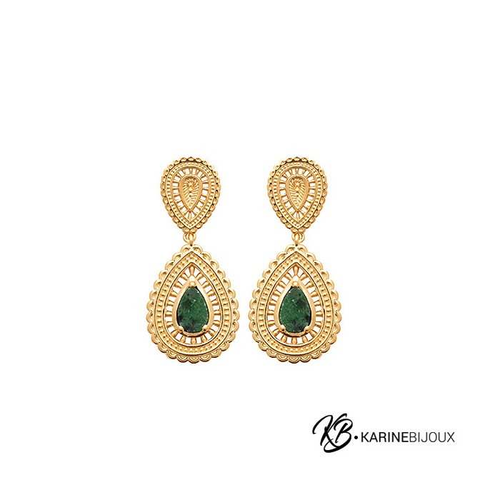 Boucles d'Oreilles Plaqué Or 18 Carats Isia - Goutte de Jaspe.