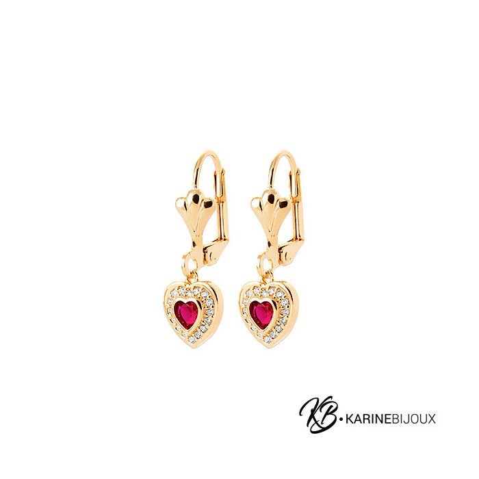 Dormeuses Plaqué Or 18 Carats Valentine – Cœur rouge Rubis Éclatant.