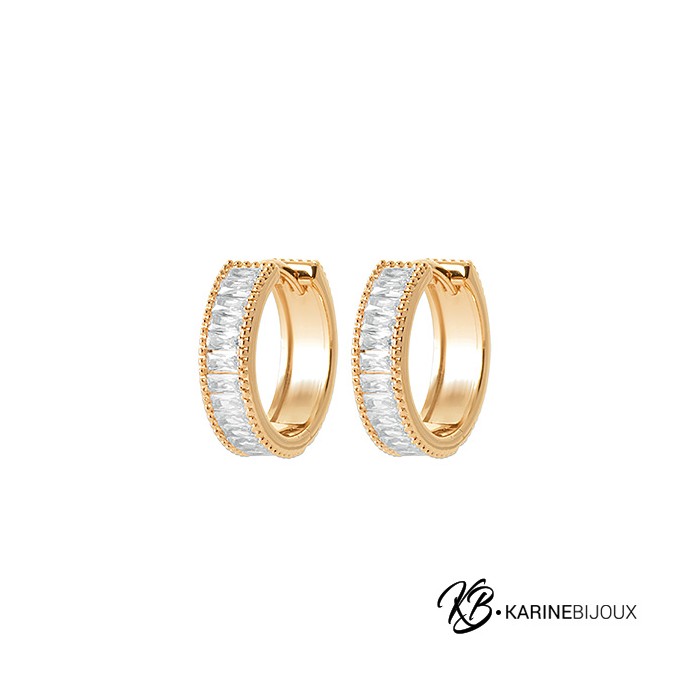 Créoles moyennes Plaqué Or 18 Carats Céleste – Pavage Baguette.