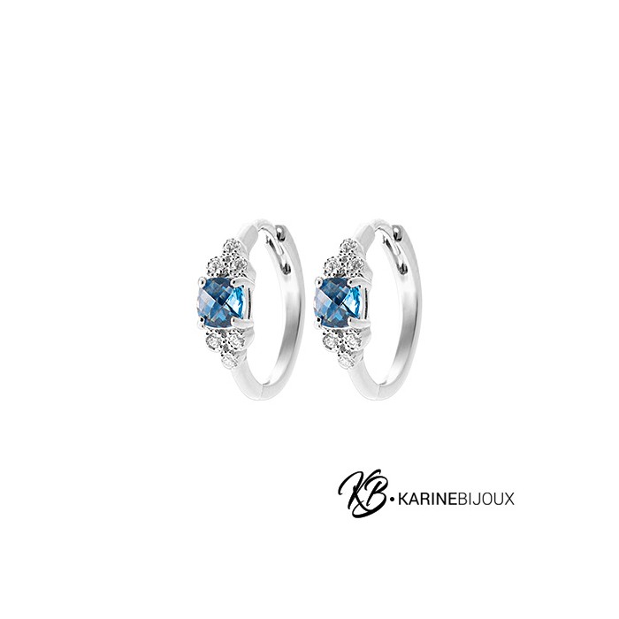 Créoles "Océane" – Argent Rhodié & Cristal Bleu.