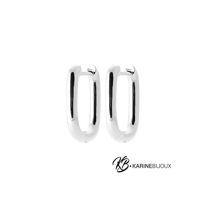 Une silhouette géométrique pour une allure épurée et graphique. Ces créoles en argent rhodié se distinguent par leur forme rectangulaire moderne aux angles délicatement arrondis. Leur fini capte chaque reflet, soulignant un design minimaliste d'une grande finesse. Idéal pour ponctuer votre style d'une touche d'élégance contemporaine et discrète.