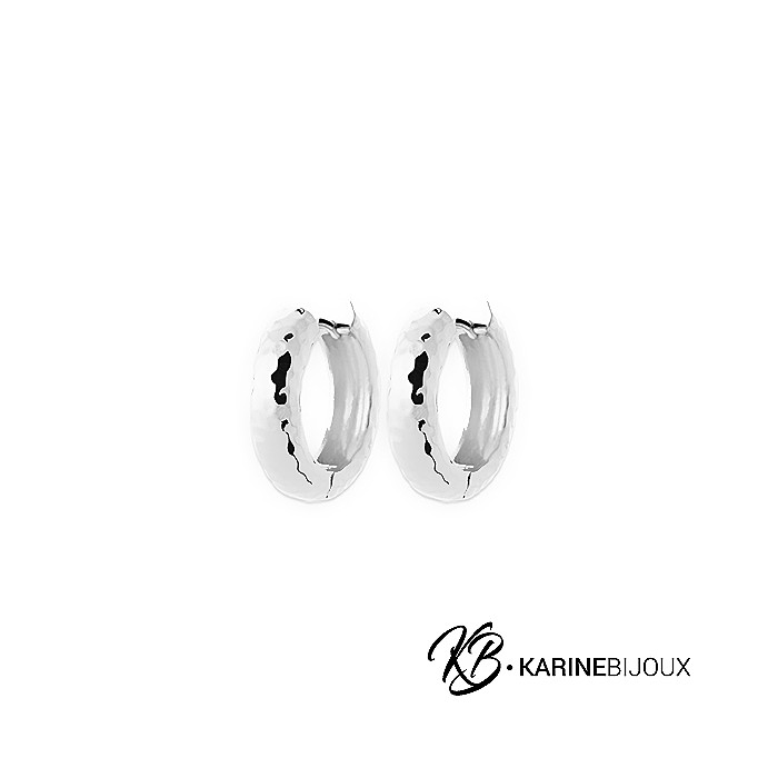 Les créoles Ravenne en argent rhodié sont un bijou intemporel et élégant. Avec leur finition martelée, ces créoles se portent en toute occasion, apportant une touche de classe à chaque tenue. Ce modèle est un indispensable dans toute collection de bijoux.