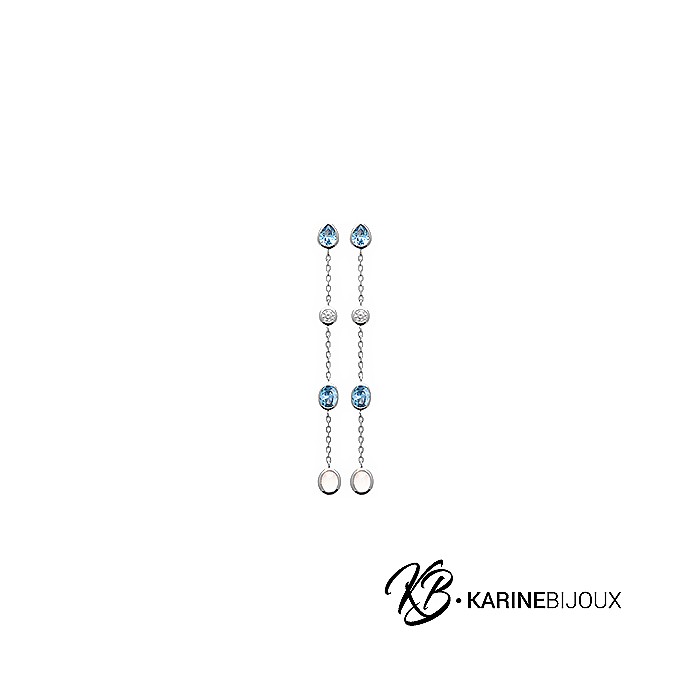 Les boucles pendantes chaînes Olbia en argent rhodié sont ornées de pierres de lune à chaque extrémité, accompagnées de micros oxydes de zirconium et d'oxydes teintés imitant l’aigue-marine. Ce modèle tout en finesse et éclatant est parfait pour sublimer vos tenues avec élégance.