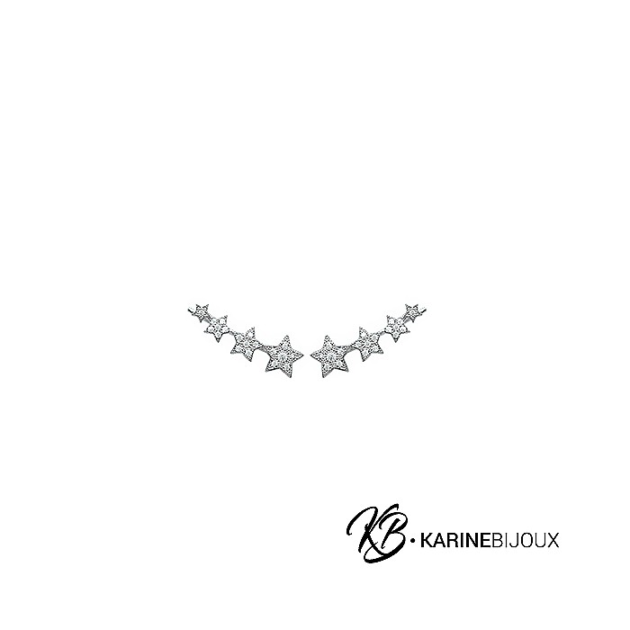 Ajoutez une touche d'éclat céleste à votre look avec les contours d'oreilles étoiles Santa Fe en argent rhodié. Ces boucles d'oreilles élégantes présentent un joli dégradé d'étoiles ornées de petits oxydes de zirconium, alignées le long de l'oreille pour capturer la lumière et sublimer votre style. Ce design raffiné et moderne est parfait pour celles qui souhaitent un bijou chic et lumineux pour des occasions spéciales ou un port quotidien.