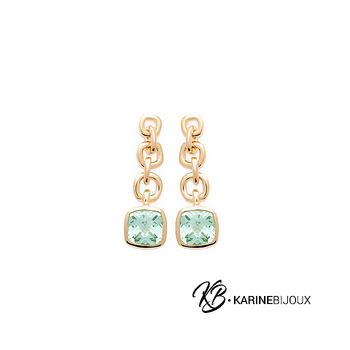 Les boucles d'oreilles pendantes Tessa en plaqué or 18 carats captivent par leurs éclatants oxydes teintés vert d'eau, montés en serti clos. Ce modèle sophistiqué présente des maillons dégradés qui ajoutent un mouvement gracieux et une touche de couleur subtile. Parfaites pour apporter une note de fraîcheur et d'élégance, ces boucles s'associent facilement avec toute tenue pour un look chic et raffiné.