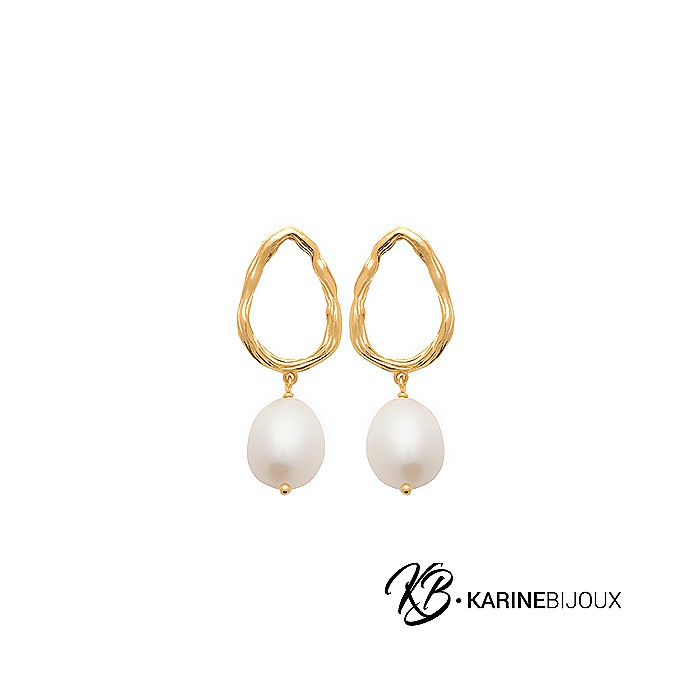 Les boucles d'oreilles pendantes Oria en plaqué or 18 carats sont sublimées par des perles de culture d'eau douce, réputées pour leur nacre de très grande qualité et leur épaisseur remarquable. Chaque perle est montée sur une forme ovale en plaqué or torsadé, ajoutant une touche d'élégance et de sophistication à votre style. Ces boucles allient luxe et finesse, idéales pour sublimer vos tenues en toute occasion.