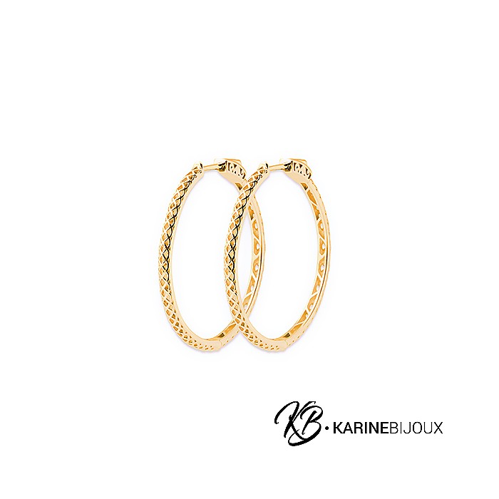 Grandes Créoles Awena motif tressé plaqué or