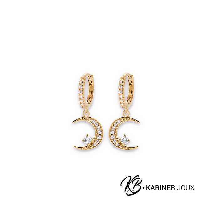 Boucles pendantes Cliona lune plaqué or
