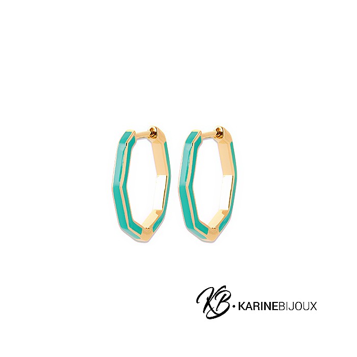 Les créoles octogonales Anna en plaqué or 18 carats apportent une touche d’originalité et de couleur à votre style estival. Ornée d'une laque turquoise sur la face avant et les côtés, leur design octogonal rehausse l’éclat naturel du plaqué or pour un rendu lumineux et captivant. Idéales pour celles qui recherchent un bijou tendance et audacieux, parfait pour compléter une tenue estivale. Conçues avec une charnière centrale, elles offrent un port confortable et une aisance optimale.