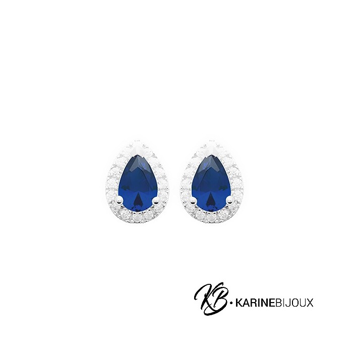 Les puces d'oreilles Kaéli en argent rhodié sont un bijou élégant et luxueux, parfaites pour mettre en valeur votre beauté. Chaque boucle est composée d’un zirconium bleu en forme de poire, imitant la profondeur du saphir, entouré d’un halo de zirconiums scintillants. Ce design raffiné est idéal pour apporter une touche d’éclat à votre style lors d'occasions spéciales ou comme cadeau précieux.