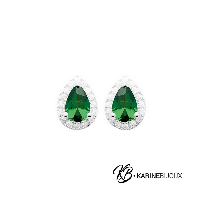 Puces d'oreilles pierres vertes argent Malia