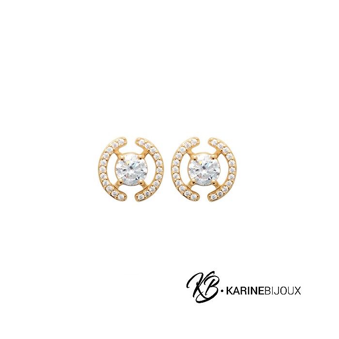 Les puces d'oreilles Orlane en plaqué or 18 carats apportent un éclat somptueux et raffiné. Chaque boucle est ornée d'un oxyde de zirconium central imitant le diamant, entouré de deux rangées d'oxydes scintillants, créant une brillance exceptionnelle. Ces puces sont idéales pour ajouter une touche d'élégance à votre look quotidien ou pour illuminer vos tenues de soirée avec une allure sophistiquée et intemporelle.