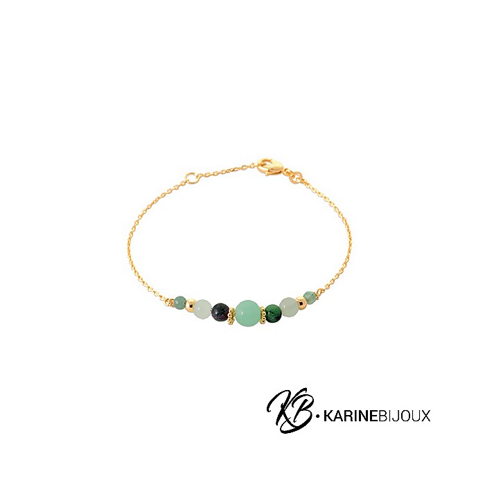 Bracelet fin pierres quartzites vertes plaqué or Aélis.
