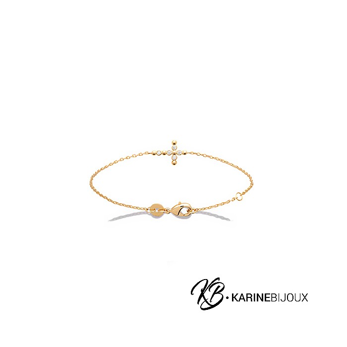Bracelet croix et oxydes plaqué or Thora.