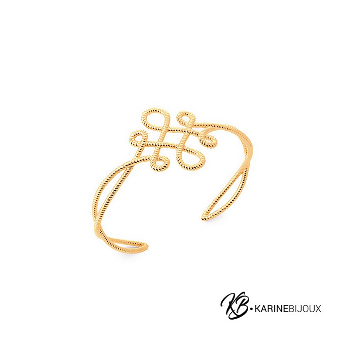 Ce magnifique bracelet rigide Milena est une pièce maîtresse de raffinement et de distinction. Fabriqué en plaqué or 18 carats, il arbore un design torsadé finement travaillé qui capte la lumière. Grâce à son design ouvert, ce bracelet s’ajuste confortablement à différentes tailles de poignet, offrant à la fois style et confort. Idéal pour les amateurs de bijoux raffinés, ce bracelet est un ajout incontournable à toute collection.