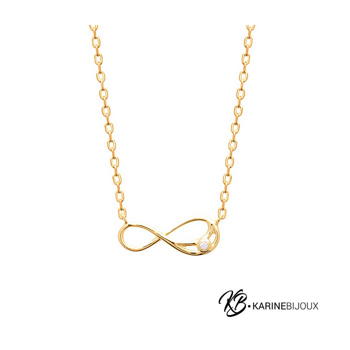 Le collier Ariana en plaqué or 18 carats est un bijou élégant et symbolique. Son pendentif infini, représentant l’amour éternel, est sublimé par un oxyde de zirconium étincelant monté en serti clos, apportant une brillance comparable à celle du diamant. La chaîne fine et délicate complète parfaitement ce motif romantique, créant un équilibre entre modernité et tradition.