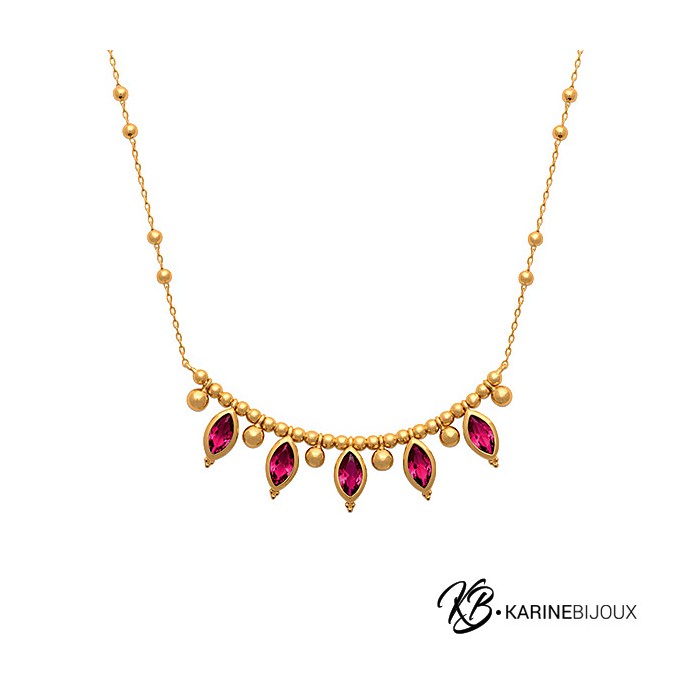 Collier pierres rouges plaqué or Swelya