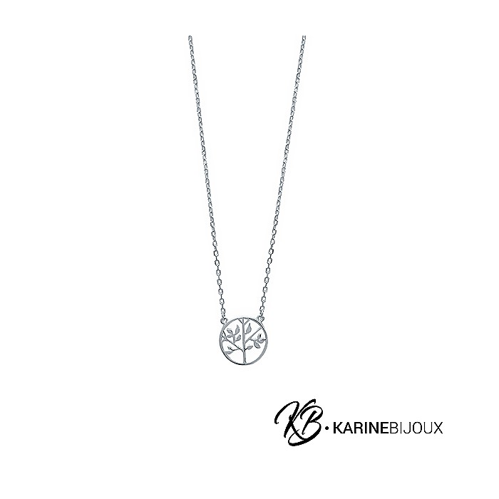 Découvrez le collier Alika, un bijou élégant et empreint de symbolisme. Conçu en argent rhodié 925, ce collier met en avant un pendentif rond délicatement ajouré représentant un arbre de vie. Ce symbole intemporel, finement travaillé, évoque la connexion et la force, tout en ajoutant une touche de charme naturel à votre style.