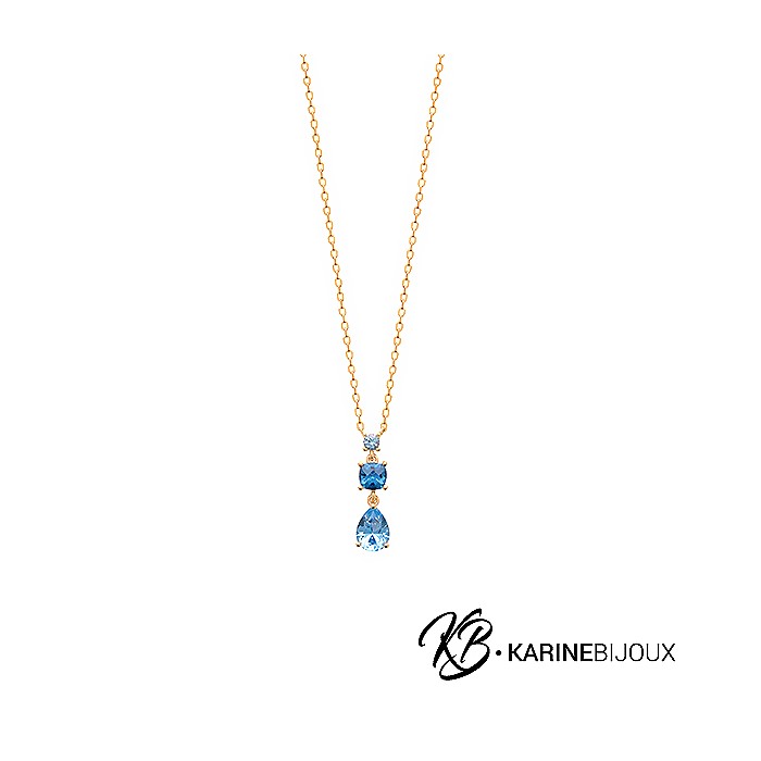 Collier Emy goutte d'eau bleue azur plaqué or
