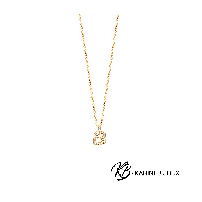 Le collier Alya en plaqué or 18 carats est une véritable invitation à la tentation et au mystère. Son pendentif en forme de serpent symbolise la puissance et la renaissance, avec des courbes majestueuses ornées de petits oxydes de zirconium pour un éclat subtil. Ce bijou captivant ajoute une dimension intrigante et séduisante à votre style.
