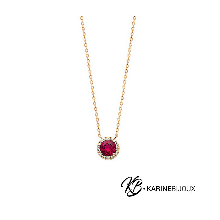 Le collier Aria en plaqué or 18 carats incarne le chic et la sophistication avec son pendentif rond orné d'un oxyde rouge aux reflets profonds rappelant le rubis. Une rangée de petits oxydes lumineux encadre la pierre centrale, ajoutant un éclat subtil et raffiné à ce bijou. Suspendu à une chaîne maille forçat ajustable entre 42 et 45 cm, ce collier s’adapte parfaitement à vos envies.