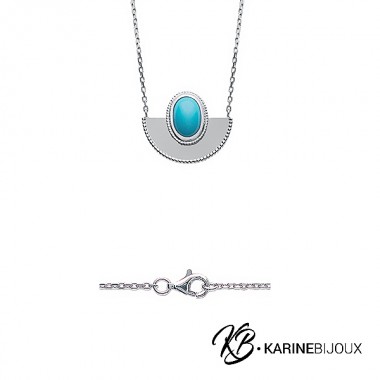 Le collier Nefertari en argent rhodié 925 s’inspire des bijoux égyptiens avec son pendentif orné d’une pierre ovale de synthèse imitant la turquoise. Encadrée d’un liseré et d’un demi-croissant décoré de petites boules en argent, cette pièce capture l’essence de l’élégance antique. Le pendentif, mesurant 1,6 cm de longueur et 2 cm de largeur, est suspendu à une chaîne maille forçat réglable entre 40 et 45 cm, offrant un ajustement parfait.