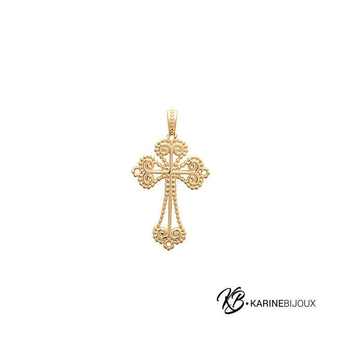 Pendentif croix filigrane plaqué or Luna