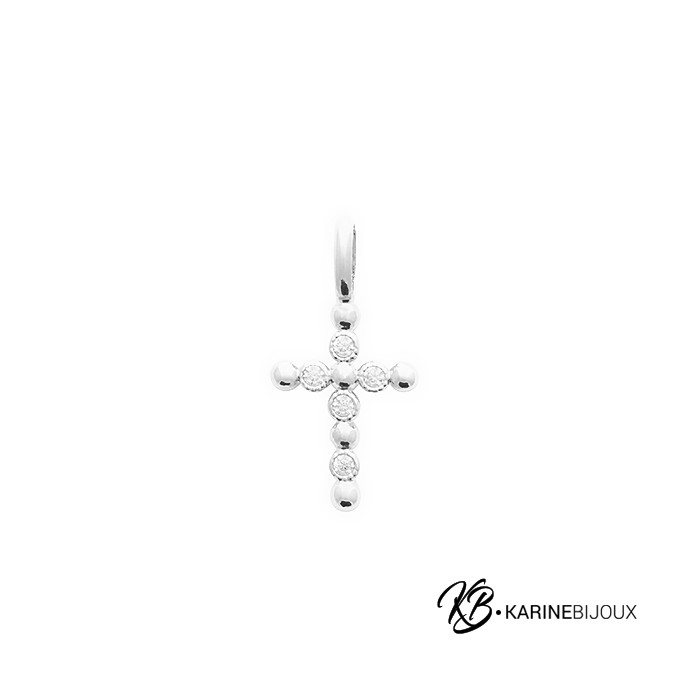 Le pendentif croix Livia en argent 925/000 rhodié allie élégance et éclat avec sa finition luxueuse. Ornée de cinq oxydes de zirconium montés en serti clos, cette croix reflète subtilement la lumière, ajoutant une touche de sophistication à son design. De petites boules en argent décorent également la croix, apportant une dimension raffinée et élégante à ce bijou intemporel.