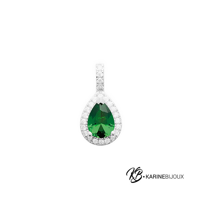 Le pendentif Louise en argent rhodié est une pièce élégante et lumineuse, ornée d'une pierre centrale taillée en forme de poire, imitant l'éclat d'une émeraude. Entourée d'un halo d'oxydes de zirconium, cette pierre apporte une touche de sophistication et de brillance à ce design raffiné. La bélière, ornée de petits oxydes, complète l’ensemble avec une finition parfaite, ajoutant encore plus d’éclat à ce bijou.
