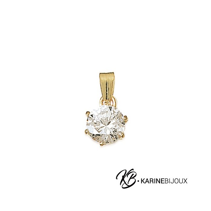 Ce pendentif solitaire en plaqué or 18 carats est un bijou élégant et intemporel, serti d'un oxyde de zirconium monté sur six griffes, mettant en valeur son bel éclat. Avec un diamètre de 1 cm (hors bélière), ce pendentif est une pièce discrète mais scintillante, parfaite pour ajouter une touche de sophistication à n'importe quelle tenue.